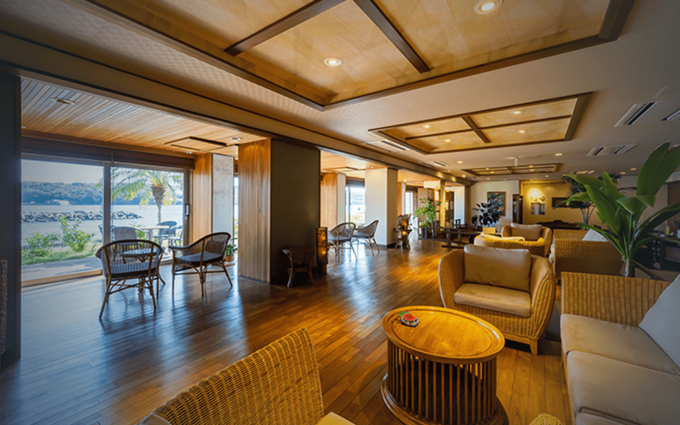 スタッフがお出迎えする桟橋からロビーへと誘われ、
